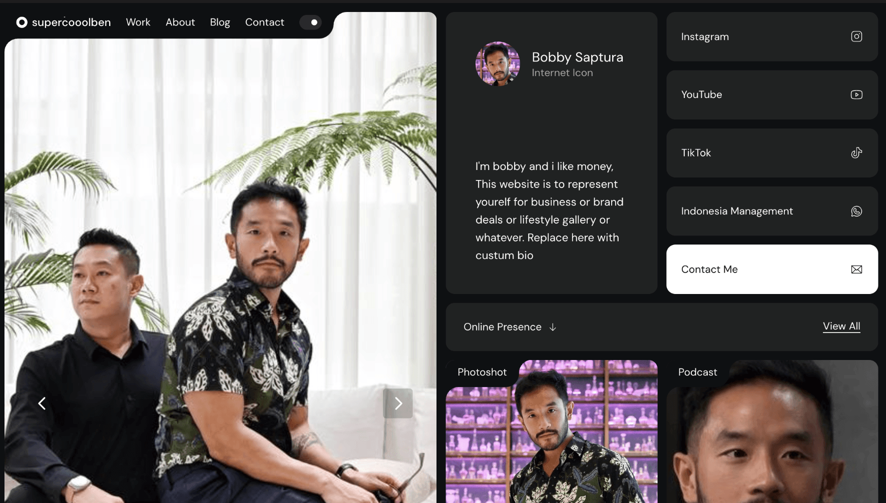"supercoolben" is the online handle of Ben Sumadiwiria, an Indonesian influencer known for his content showcasing a luxurious, often humorous, portrayal of his lifestyle and experiences. He has gained popularity on platforms like Instagram and YouTube by creating content that often revolves around his wealth, travel, food, and interactions with high-status individuals.